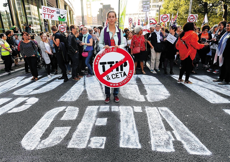 参与游行的有农业、医疗、国际组织等八个团体,囊括学生、社工和农场主等各领域民众,队伍中不乏来自英国、法国、希腊等国的抗议者。他们对记者表示,担心TTIP和CETA将降低欧盟食物和环保标准,并在劳工保护、安全标准、中小型企业利益等方面使自身利益遭受损失。