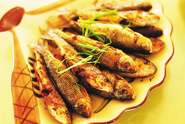 保亭石鲮鱼只能生活在无污染的环境中,对水质要求非常高,长年生长在水质纯净的山涧小溪中,最喜欢逆流而上,与湍急的溪水嬉戏,因此有个雅号叫“会冲浪的鱼”。石鲮鱼的习性限制了自身的生长,一般个头都不大。却因为喜欢逆流,勤奋而游,所以鱼肉富含蛋白质,入口特别滑嫩,小巧而精华。石鲮鱼无论香炸、清蒸还是清水煮,都是一道美味佳肴。香炸和烧烤,香脆味甜,很有嚼头。而黎家人最喜欢用酒糟煮之,特别是用极品山兰酒糟烹调的石鲮鱼,更是将保亭最好的食材和最好的酒的功效发挥到极致。