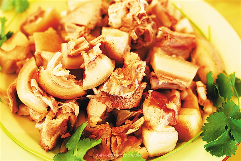 五脚猪又名香猪、“多情猪”。据说这种猪是山区农民放养在山地里的家猪与野猪的后代。这种猪像野猪一样脚短小,个体不大,重量轻,养一年也只有百来斤,嘴尖且长,喜欢在野外到处拱土觅食,走起路来嘴巴贴着地,嘴不离土,从后面看就像五只脚,所以当地人认为它的嘴也是一只脚,就称之为“五脚猪”。虽然它也是家猪,可是饲养过程中未加圈养,一日饲养二至三次后任其在外自由觅食和活动,因而它皮厚油少,肉质结实,鲜嫩爽口,味道芳香,多吃不腻。不管是白切、烧烤或火锅都味道俱佳,风味独特。(见阳 磊磊)