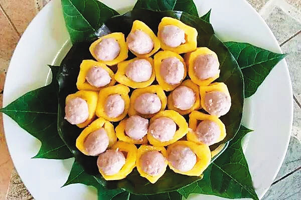 保亭近年来旅游业的崛起也为黎苗美食的发展提供了最坚实的基础。经过比较,保亭旅游委遴选出保亭五大特色名菜和五大小吃,分别是白切五脚猪、保亭六弓鹅、香煎石鲮鱼、石锅小黄牛、什玲鸳鸯鸡和山兰椰子卷、脆香荖叶卷、肉丸菠萝包、雨林三宝、野菜丸子。