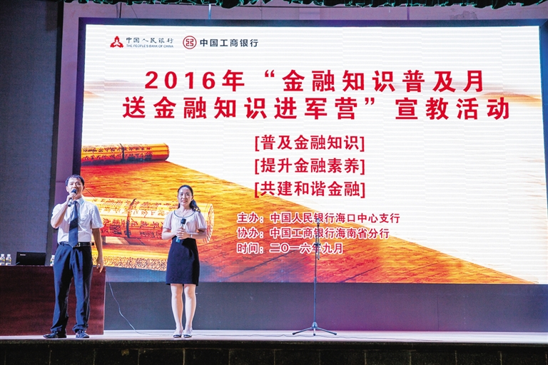 这次“金融知识进军营”宣教活动是人民银行海口中心支行2016年“金融知识普及月”活动的一次专场活动。从9月1日开始,人民银行海口中心支行组织全省银行业、证券期货业、保险业金融机构、支付机构等一百多家机构开展“金融知识普及月”活动。普及月以“开展金融知识普及活动,重视不同群体消费者金融需求,提升广大消费者的金融素养,引导其正确运用金融知识,增强风险意识和责任意识,共创和谐金融环境”为主题,通过举办金融知识讲座、培训、竞赛等形式推动金融知识进军营、学校、工厂、养老院和农村。