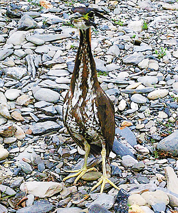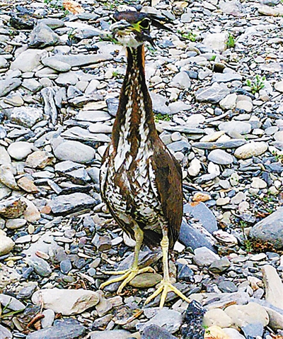 据了解,海南虎斑鳽翅膀上的覆羽为暗褐色,具有少许白色的斑点,颏部、喉部和前颈为白色,中央有一条黑线直通到下喉部。卢刚介绍,海南虎斑鳽主要栖息于高山密林中的山沟溪流和其他有水域的地方,属于夜行性鸟类,鲜少有成群活动。