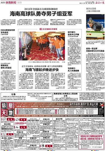 海南日报 体育新闻综合 009 2016-09-251 2016年09月25日 星期日
