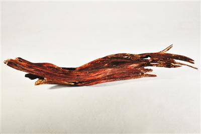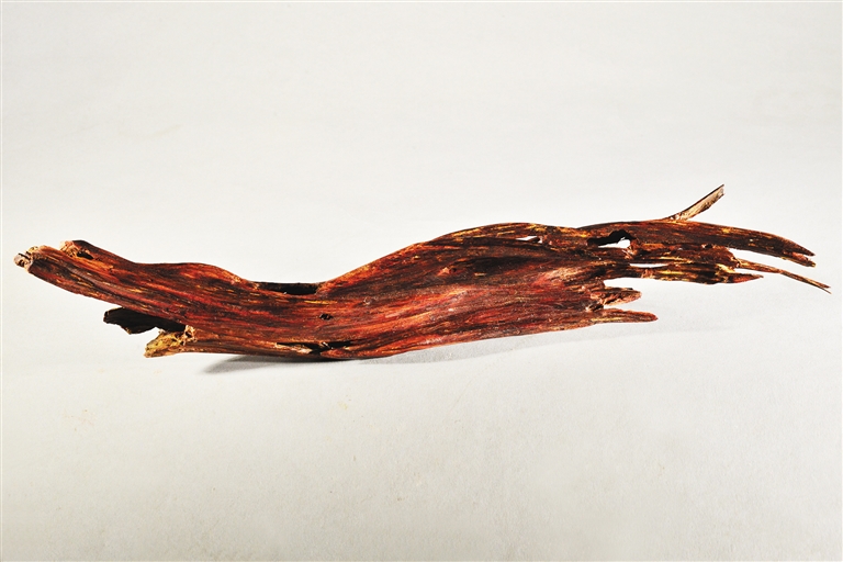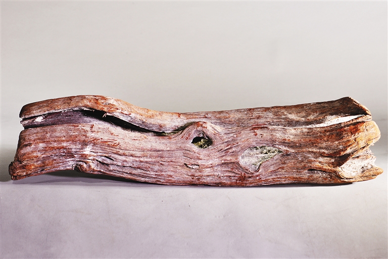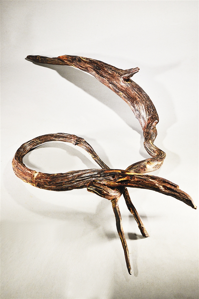 几根藤条状的红色木头,其身密布虫洞,因常年在深海中浸泡,木头表面结着一层白色的结晶物,捧起细看,颜色古朴温润,其味淡雅入脾,数百年风华纹理,尽在一木之间。
