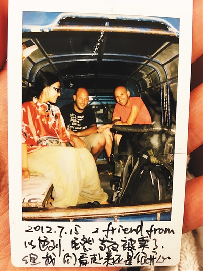 “2012年7月15日,two friends from 以色列。虽然当夜被卖了,但我们看起来还是很开心。”这是楠茜在旅行中用拍立得拍摄的一张照片空白处写下的话语,据楠茜回忆,当时的她要去往以色列的某个地点,就租了一辆“tuk tuk”(嘟嘟车,当地的三轮摩托车),并坐在后车厢里,路上碰到了两位外国友人,三人一路走来相谈甚欢,即便是最终司机因为种种原因没有将三人送到目的地,但三人依旧开心。