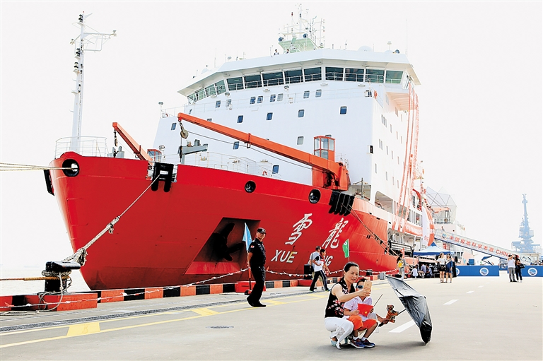 9月26日,“雪龙”号停泊在中国极地考察国内基地码头。 中国第七次北极科学考察队完成了78天的考察任务,于26日乘“雪龙”船顺利返回位于上海的中国极地考察国内基地码头。 本次考察自7月11日开始至9月26日结束,总航程约13000海里,最北到达北纬82度53分。考察范围包括白令海、白令海峡、楚科奇海、楚科奇海台、加拿大海盆等我国传统考察区域,以及俄罗斯北部的门捷列夫海岭。
