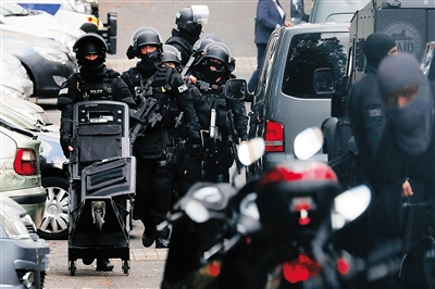 9月26日,在法国巴黎近郊,警方逮捕枪手后撤离。 当日,巴黎近郊一家超市门口发生一起枪击事件,造成两人重伤。据报道,枪手在持枪伤人后逃回家中,法国警方迅速展开围捕。枪手已向警方投降。 新华社/法新