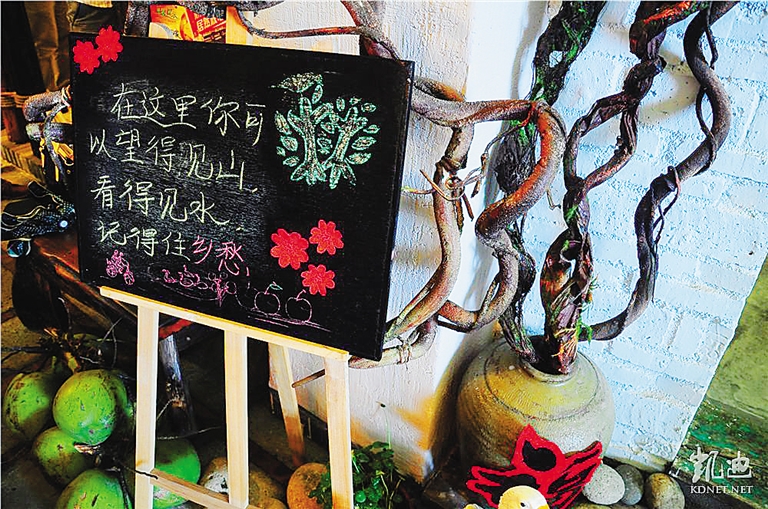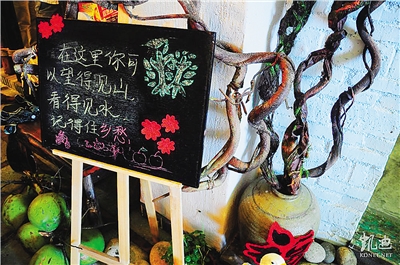 “博鳌兴建机场时,老房子拆迁,我跑去找老乡们买旧物。”森林客栈创始人冯清雄摩挲着每一件家具,视那些古桌、古椅、古柜、古坛、古屏风为珍宝。而水泥地上的一小块斑斓瓷砖,墙上的斗笠、槟榔,便成了幕景,入了画,惹得外地客人借来旗袍拍复古写真。