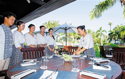 随着国庆黄金周的临近,三亚各酒店积极备战,对服务员开展职业技能、应急情况处理等培训,并开展入住优惠套餐等活动。