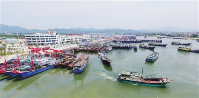 走进崖州中心渔港,记者看到一艘艘渔船整齐地停靠在崭新的码头边,隔着一条宽阔的大道是全新的大型冷库和交易大厅,在不远处,投资1.5亿元、规划95米高的崖州中心渔港灯塔正紧张施工。崖州中心渔港项目是海南规模最大、设施最全、全国一流的集生产作业、后勤补给和海产品加工于一体的中心渔港。渔港重点发展海洋捕捞、渔业加工和渔港物流产业,同时充分挖掘海洋文化,利用中心渔港的集聚效应,建设融各式食肆、酒吧、特色商店、海鲜市场于一体具有鲜明旅游特色的“渔人码头”,发展渔业体验旅游经济。自8月1日开港以来,日交易量已达到30万斤。