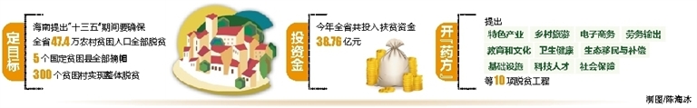 4天后,海南召开省委六届九次全会,提出“十三五”期间要确保全省47.4万农村贫困人口全部脱贫,5个国定贫困县全部摘帽,300个贫困村实现整体脱贫。今年新年伊始,全省扶贫开发工作会议召开,全面部署海南脱贫攻坚任务。