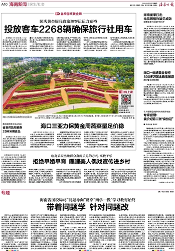 海南日报 海南新闻民生/社会 010 2016-09-291 2016年09月29日 星期四