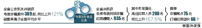 据了解,我省公安部门已抓获864名在逃网络电信诈骗嫌犯,目前还有86名嫌犯在逃。省公安厅希望社会各界和广大人民群众提供有关线索,同时检举、揭发电信网络诈骗等违法犯罪活动。发现有关情况,请及时拨打当地110报警。对发现线索的举报人、协助缉捕有功单位或个人,每抓获一名犯罪嫌疑人公安部门将予以重奖。