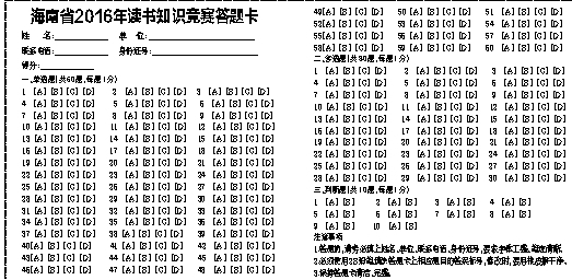 纸质答题题目及答题卡详见海南日报9月30日第B04版。纸质答题卡请于11月10日前(以邮戳时间为准)邮寄到海南凤凰新华出版发行有限责任公司重点图书营销部候少轩收,邮政编码:570206。