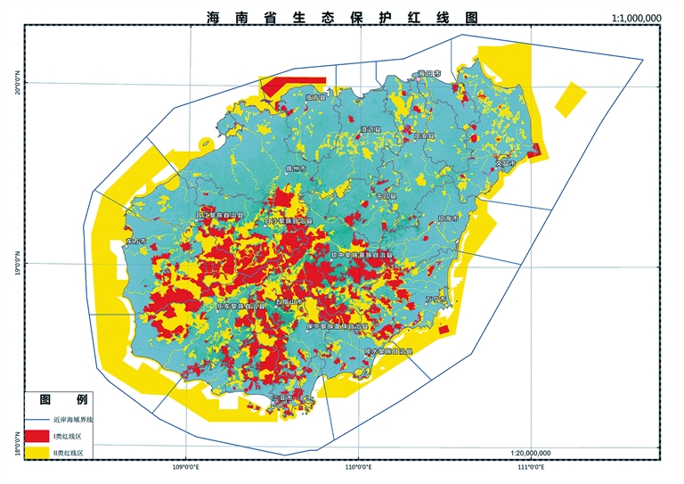 海南岛近岸海域生态保护红线范围共计8316.6平方公里,占近岸海域面积的35.1%,分为Ⅰ类红线区和Ⅱ类红线区,包含17个功能区(详见附件2)。