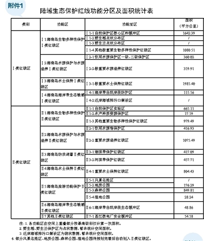 附件:1.陆域生态保护红线功能分区及面积统计表