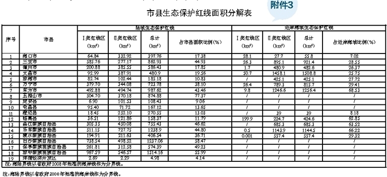 3.市县生态保护红线面积分解表