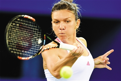 9月29日,在武汉网球公开赛中,罗马尼亚选手哈勒普战胜美国选手凯斯,晋级四强。图为哈勒普在比赛中回球。新华社发
