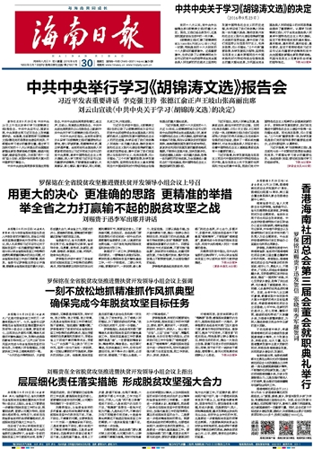 海南日报 头版 001 2016-09-301 2016年09月30日 星期五
