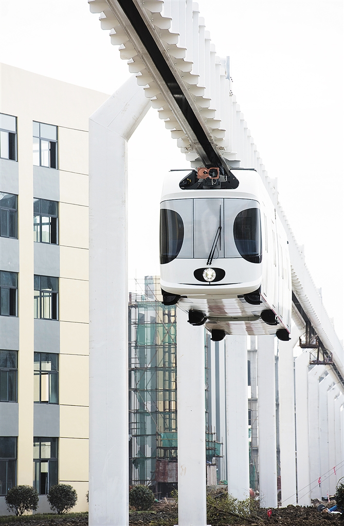 我国首列新能源悬挂式空中列车成功挂线