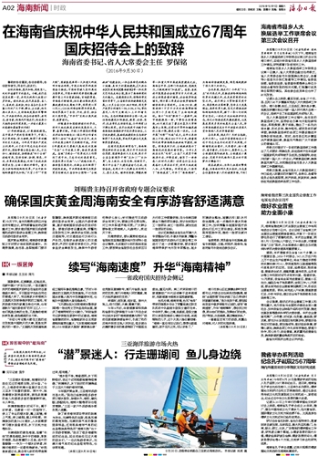 海南日报 海南新闻时政 002 2016-10-011 2016年10月01日 星期六