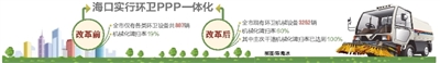 得益于海口推行的环卫一体化PPP项目,海口4家环卫PPP企业共投入经费2.46亿元,购置各类车辆共计2445辆。它们的“战场”遍及车行道、人行道、高架桥、水面、背街小巷,现代化设备通过先进作业模式,使作业效率显著提升。