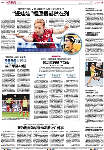 海南日报 体育新闻综合 004 2016-10-051 2016年10月05日 星期三