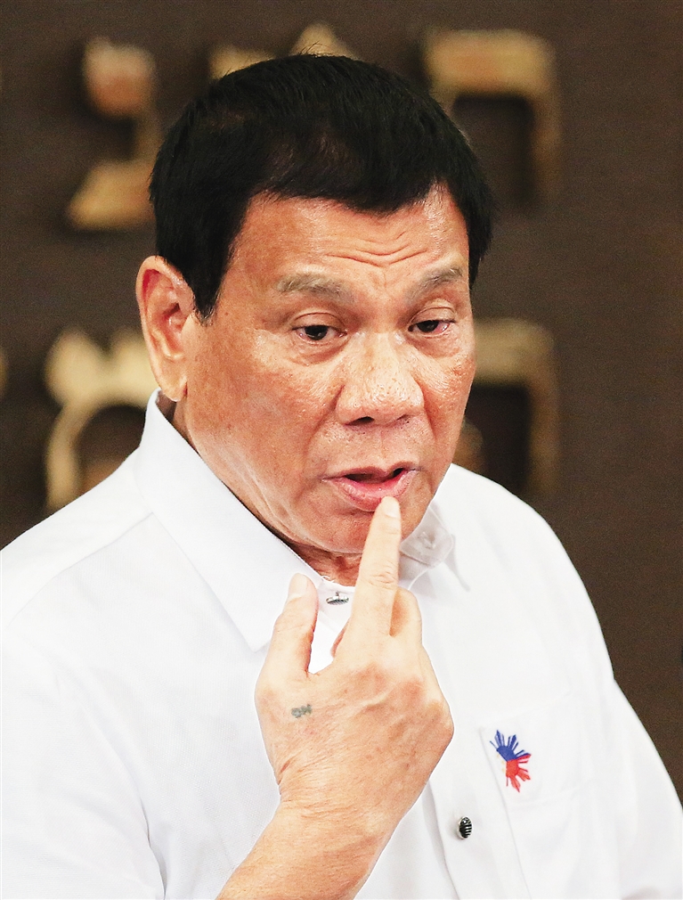 10月4日,在菲律宾首都马尼拉南部的马卡蒂,菲总统杜特尔特在菲律宾犹太人联合会上发表讲话。 杜特尔特当日在此间表示,他要“调整外交政策”,可能会在任内“与美国分手”。美国白宫对此回应称,美菲的外交沟通渠道仍然畅通。 新华社/法新
