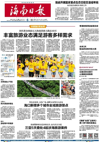 海南日报 头版 001 2016-10-061 2016年10月06日 星期四