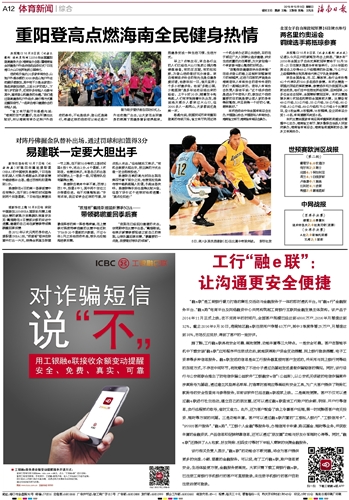 海南日报 体育新闻综合 012 2016-10-091 2016年10月09日 星期日