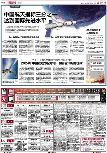 中国航天指标三分之一达到国际先进水平