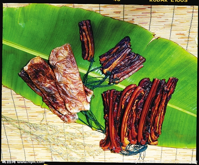 古代这些腌肉分得相当细致,按汉儒郑玄的说法,大的动物如牛、羊、猪、鹿,都是先切成片再腌制,这种肉干叫做“脯”;而那些整只腌的小动物像鸡、鸭、雁等,只能称作“腊”;还有就是把肉捣烂再加上姜桂等辛香调料的腌肉又叫做“锻脩”了。