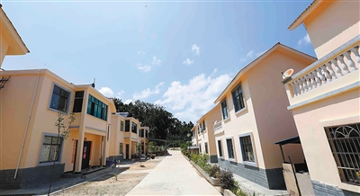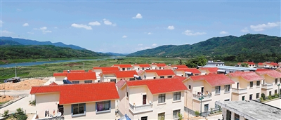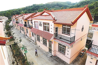 排排农家小楼在青山映衬下格外醒目,富美乡村建设让琼中湾岭镇大边村焕然一新。49栋框架结构的新房整齐地排列着,房屋外立面呈统一的鹅黄色外衣,加之独具韵味的仿古庭廊、湿地花园,营造出一种乡村梦幻田园风韵,农民搬进新居,喜上眉梢。