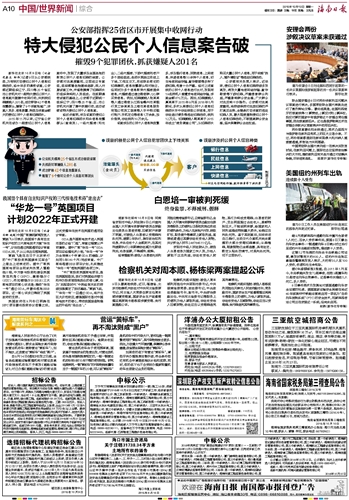 海南日报 中国/世界新闻综合 010 2016-10-101 2016年10月10日 星期一