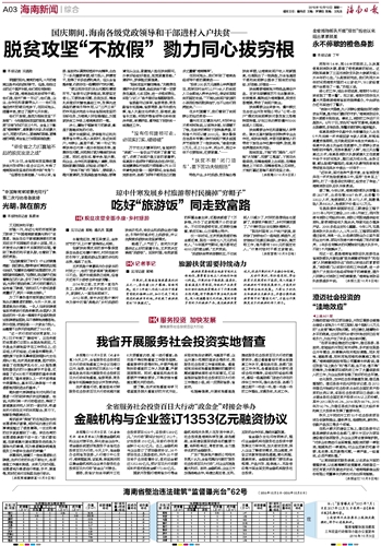 | 海南日报 海南新闻综合 003 2016-10-101 2016年10月10日 星期一 |