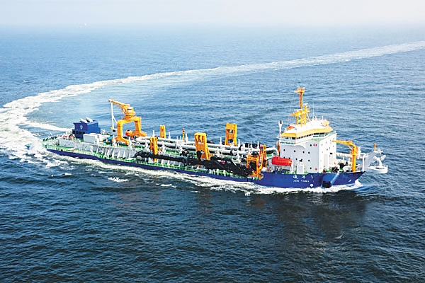 “浚洋1”是目前世界上最先进的耙吸式挖泥船之一,具有自动化程度高、抗风能力特强的优势,能在八级风浪条件下作业。