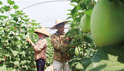 据悉,乐东佛罗镇利用福塘、青山等村的大棚哈密瓜种植专业合作社优势,引导贫困户通过贷款、致富能手“一带一”加入合作社,进行产业扶持和就业帮扶脱贫。目前,福塘村已发展哈密瓜种植5000余亩。该村56户贫困户中,已有50户贫困户摘下了“贫帽子”。本报记者 武威 通讯员 林东 摄
