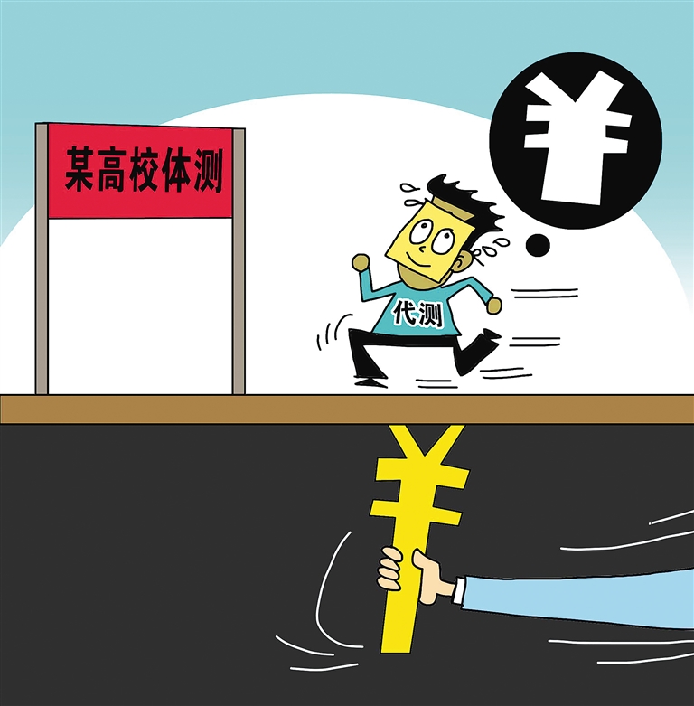 何为体质测试?无非就是肺活量、立定跳远、体前屈、引体向上、仰卧起坐、跑步等基础内容,但就是这样的常规项目,检测起来竟要学生签订免责协议书,不得不说,学生体质测试俨然成了高危项目。我们在指责学校推脱责任的同时,不得不感叹当前学生体育锻炼的不足以及体质测试的变样。更为严重的是,体质测试本是为了学生健康着想,可是连学生本身也不重视,为了蒙混过关,竟“代测”成风。体质测试就在这样的“你不情我不愿”中极度变形走样,这根子里反映的正是我们“重学习轻锻炼”的教育弊病,长此以往,定会影响下一代健康全面成长,不得不引起我们高度重视。这正是: