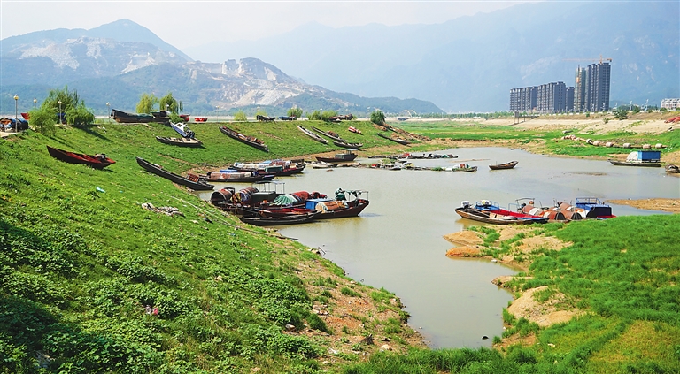 图为鄱阳湖庐山市流域附近停靠的渔船(10月10日摄)。 据江西省水文局监测,9月19日,鄱阳湖标志性水文站星子站水位跌破12米大关,鄱阳湖较历史同期提前54天进入低水位期。9月28日9时15分,星子站水位跌破10米枯水线。预计10月中旬,星子站水位将接近8米的极枯水位。目前鄱阳湖水域面积不到1000平方公里,不及丰水期的1/3,大面积湖区几乎变成了草原。 不少在鄱阳湖周边从事捕鱼20多年的渔民向记者表示,他们从未见过刚到9月底鄱阳湖就出现如此低水位的现象。 新华社记者 胡晨欢 摄