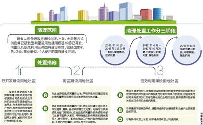据了解,本次清理处置,将采取拉网式排查,逐宗建档,逐宗上图,全面清理掌握我省建省以来已颁发土地权属证书的国有建设用地情况,并区分不同情形,按照法律法规和相关处置政策,逐宗查明原因,逐宗制定处置方案,无论涉及到什么单位和企业,一律要清查到底,坚决依法处置。