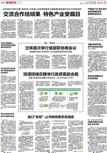 海南日报 海南新闻时政 002 2016-10-151 2016年10月15日 星期六