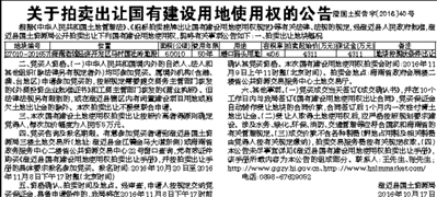 关于拍卖出让国有建设用地使用权的公告