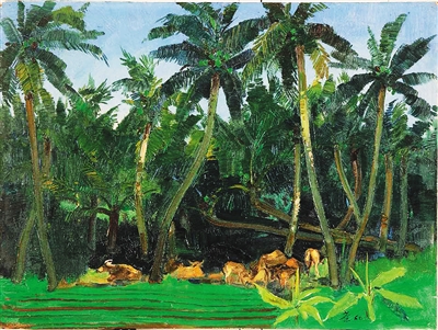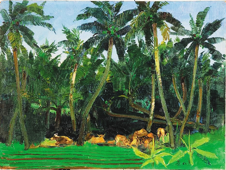 “众所周知,吴冠中生前曾撕毁了大量自己认为不满意的作品,并将其优秀作品大部分捐给了公立美术馆,而这张《椰林与牛》能得到留存、捐赠,足见在吴先生的艺术作品中占有多么重要的地位,应该说在他的心里,这趟海南之行所绘制的‘游记’是十分珍视。”卢家荪说。