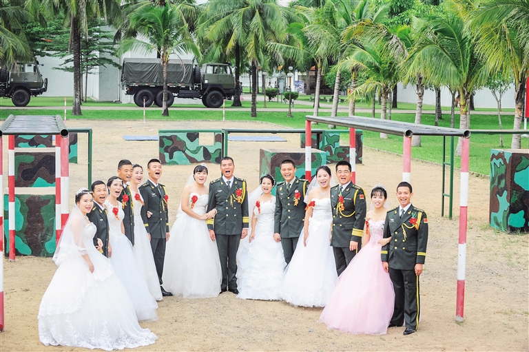 一段朴素而庄重的证婚誓词在军营上空久久回荡,八朵皎洁的爱之花灿然绽放。10月1日,一场朴素而热血军营婚礼在驻琼某部军营举行, 在礼乐齐鸣下,8对新人在战友们的祝福和见证下,迎来了一场浪漫而热血的结婚仪式。