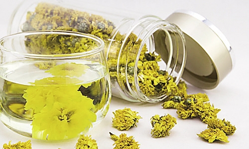 菊花不仅让人赏心悦目,托物言志,也可采来沏茶具有益寿保健的功效。《本草纲目》上有记载:“其利五脉,调四肢,治头目风热,脑骨疼痛,养目血,去翳膜,主肝气不足。”因其有延年益寿的药用功能,而得“寿客”之美名。中药古书上有:“菊花,苗可以菜,花可以药,囊可以枕,酿可以饮……”医疗实践证明,菊花确有良好的解热降压作用,常服菊花,对防病保健,延年益寿是大有好处的。