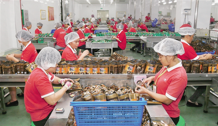 “实际上按照目前的生产量,我们还缺少近4000来个工人,只要是愿意来这里打工的村民,我们都欢迎。”口味王公司总经理曾海东介绍,目前口味王在万宁市的后安、东澳两个生产基地,已经提供了6000多个就业岗位,如果基地二期建设投产,会需要更多的工人。