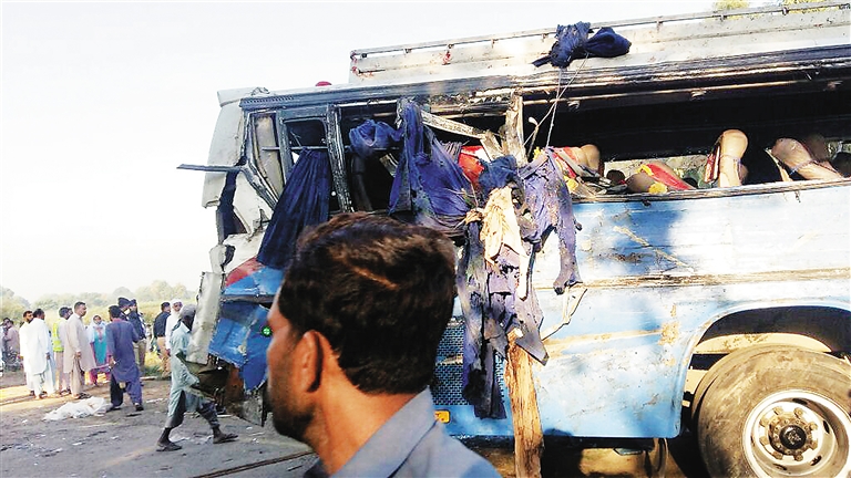 据巴基斯坦媒体17日报道,巴东部旁遮普省当天上午发生一起巴士相撞事故,目前已造成27人死亡,50多人受伤,其中15人伤势严重,死亡人数或进一步上升。 新华社发