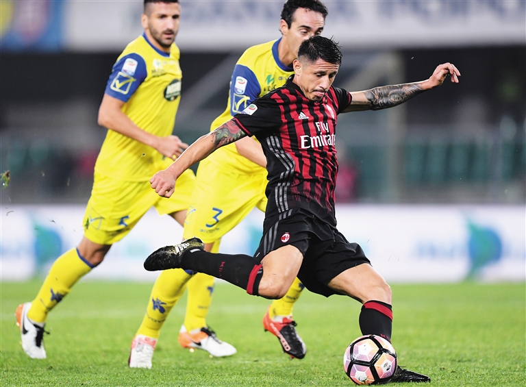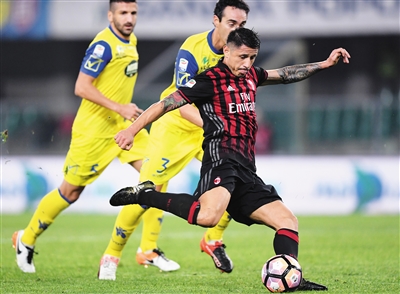 16日,在意甲第8轮比赛中,AC米兰队客场以3:1战胜切沃队。图为AC米兰队球员拉帕杜拉(右)在比赛中射门。 新华社发