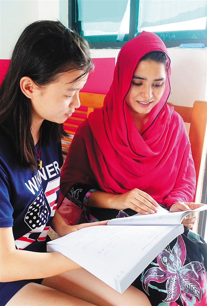 在海南医学院的留学生宿舍里,来自巴基斯坦的萨姆打开电脑,熟练地输入淘宝网网址,快速搜索着自己喜欢的东西。当看到不太理解的网络流行词语或是碰到“选择困难症”时,萨姆会给辅导员符琳或者给同学胡佩伦打个电话,讨教一下“淘宝秘籍”。同样来自巴基斯坦的索比亚,正在聆听中国同学宗桥第一次品尝巴基斯坦美食的感受……