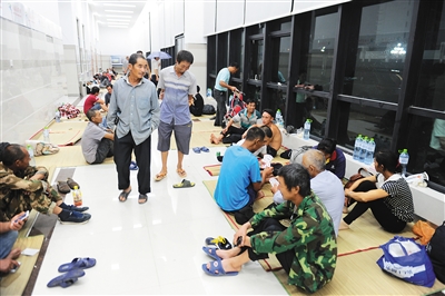 面对渐渐逼近的台风“莎莉嘉”,从17日中午12点开始,万宁市境内多个工程工地上的工人,开始陆续向设置在万宁市内的安置点转移,位于市区内的万宁市多功能中心就是其中一个较大的安置点。这个可以安置2000名群众的公共建筑,截至17日下午,已经安置民工820人。
